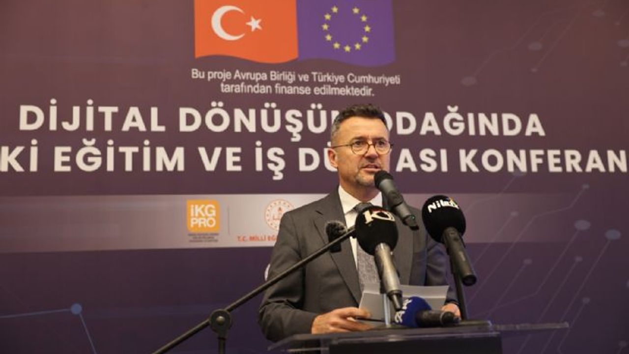 Dijital dönüşümün insan hayatına hızla girdiğine değinen Mesleki ve Teknik Eğitim Genel Müdürü Ali Karagöz, "Bu dönüşümü hayatımıza yön veren değil hayatımızı kolaylaştıran bir boyuta evirmeliyiz" değerlendirmesini yaptı. Dijital dönüşüm kadar son dönemlerde yeşil dönüşümün gerekliliğinin de kendisini gösterdiğini vurgulayan Karagöz, dijital dönüşümün yeşil dönüşümü güçlendirmesi, ikili dönüşüm sağlanması gerektiğini söyledi. Karagöz şöyle konuştu:"Dijital dönüşüm üretimden tüketime kadar her kaynağın nasıl etkili kullanılabileceğini bize en üst perdeden anlatan bir dönüşüm olmalı. Bunu nitelikli, eğitimli işgücü ile yapabiliriz. Bu noktadan hareketle mesleki eğitimin dijital dönüşümün de yeşil dönüşümün de ihtiyaçlarını algılayıp ona uygun üretimin karşılanabilmesini hayata geçirmeliyiz. Bunu da nitelikli mesleki ve teknik eğitimle kazandırmaya gayret ediyoruz."