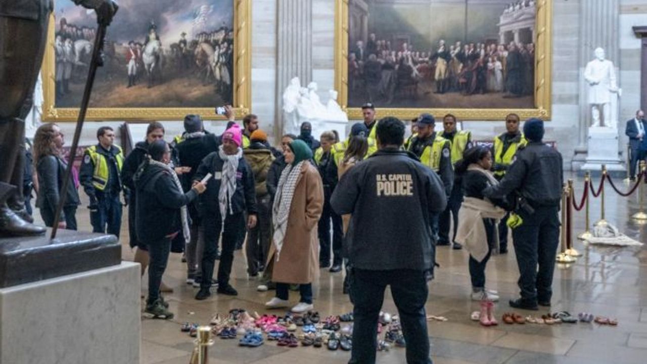 ABD'nin başkenti Washington DC'de yer alan Kongre binasına ziyaretçi kılığında giren bir grup protestocu, İsrail'in Gazze Şeridi'ne yönelik saldırılarını protesto ederek, Gazze'de acil ateşkes çağrısında bulundu.