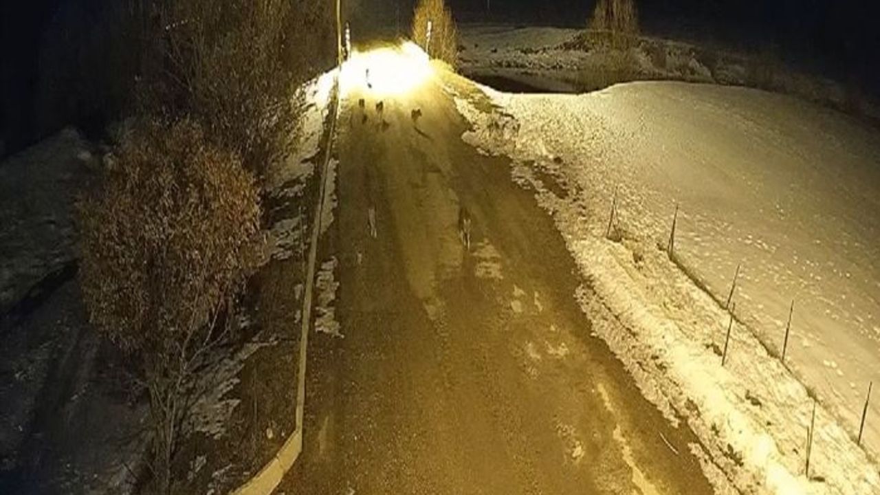 Bayburt'ta yüksek kesimleri yağan karla beyaza büründü, doğal yaşam alanlarında aç kalan kurtlar da yerleşim yeri yakınına inip yiyecek aradı. Merkez ilçeye bağlı Çayıryolu köyüne inen kurtların sürü halinde dolaşıp, yiyecek aradığı anlar, çevredeki güvenlik kamerasıyla görüntülendi. Görüntülerde; kurtların sürü olarak geldiği köyde dolaştığı, daha sonra da ormana girip kaybolduğu yer alıyor.
