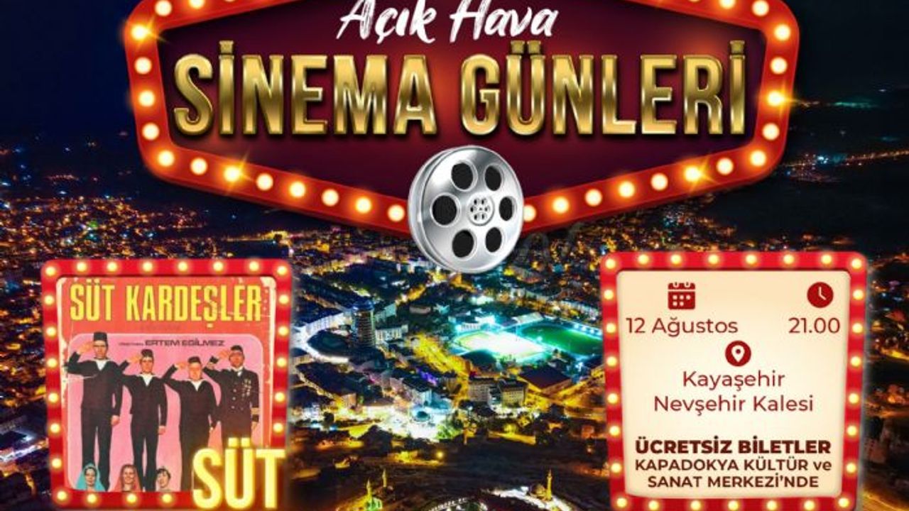 Nevşehir Belediyesi Kültür ve Sosyal İşler Müdürlüğü tarafından gerçekleştirilen ve tekrar tekrar izlemekten keyif aldığımız Yeşilçam filmlerini açık havada Nevşehirlilerle buluşturan Açık Hava Sinema Günleri devam ediyor. İlk iki gösterimi büyük ilgi gören etkinlikte 12 Ağustos Cumartesi akşamı 'Süt Kardeşler' filmi gösterilecek. Yönetmenliğini Ertem Eğilmez'in yaptığı, Hüseyin Rahmi Gürpınar'ın Gulyabani isimli romanından uyarlanan ve başrollerinde Kemal Sunal, Şener Şen, Adile Naşit, Halit Akçatepe ve Hale Soygazi gibi isimlerin yer aldığı komedi filmi için biletler satışa çıktı.
