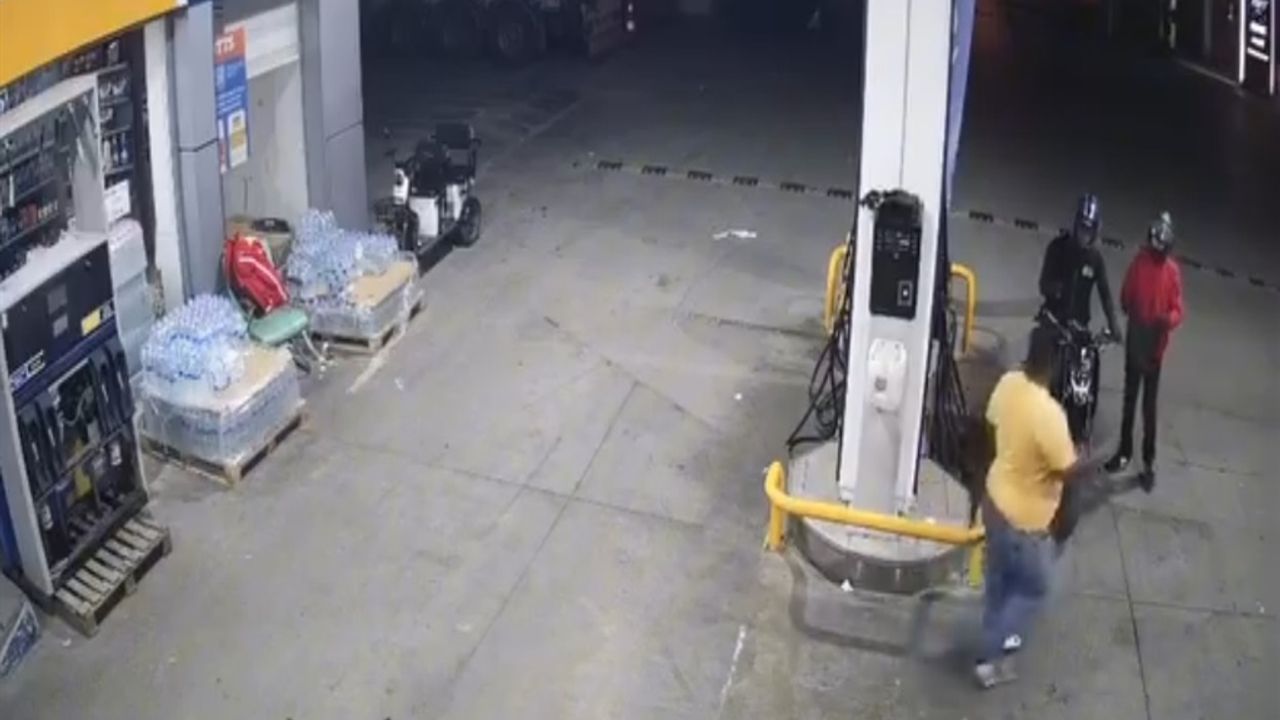 Adana'da bir akaryakıt istasyonunun marketini soyan 2 şüphelinin, olaydan dakikalar sonra başka bir istasyonda çalışan, pompacı diye tabir edilen satış elemanına silah doğrultup paraları gasbettikleri ortaya çıktı. Olay, güvenlik kamerasına yansıdı. Görüntülerde, motosikletle istasyona gelen şüphelilerin, tabanca doğrulttukları pompacıdan gasbettikleri parayı poşete doldurduktan sonra kaçtığı anlar yer aldı. Ekiplerin şüphelileri yakalamak için çalışması devam ediyor.