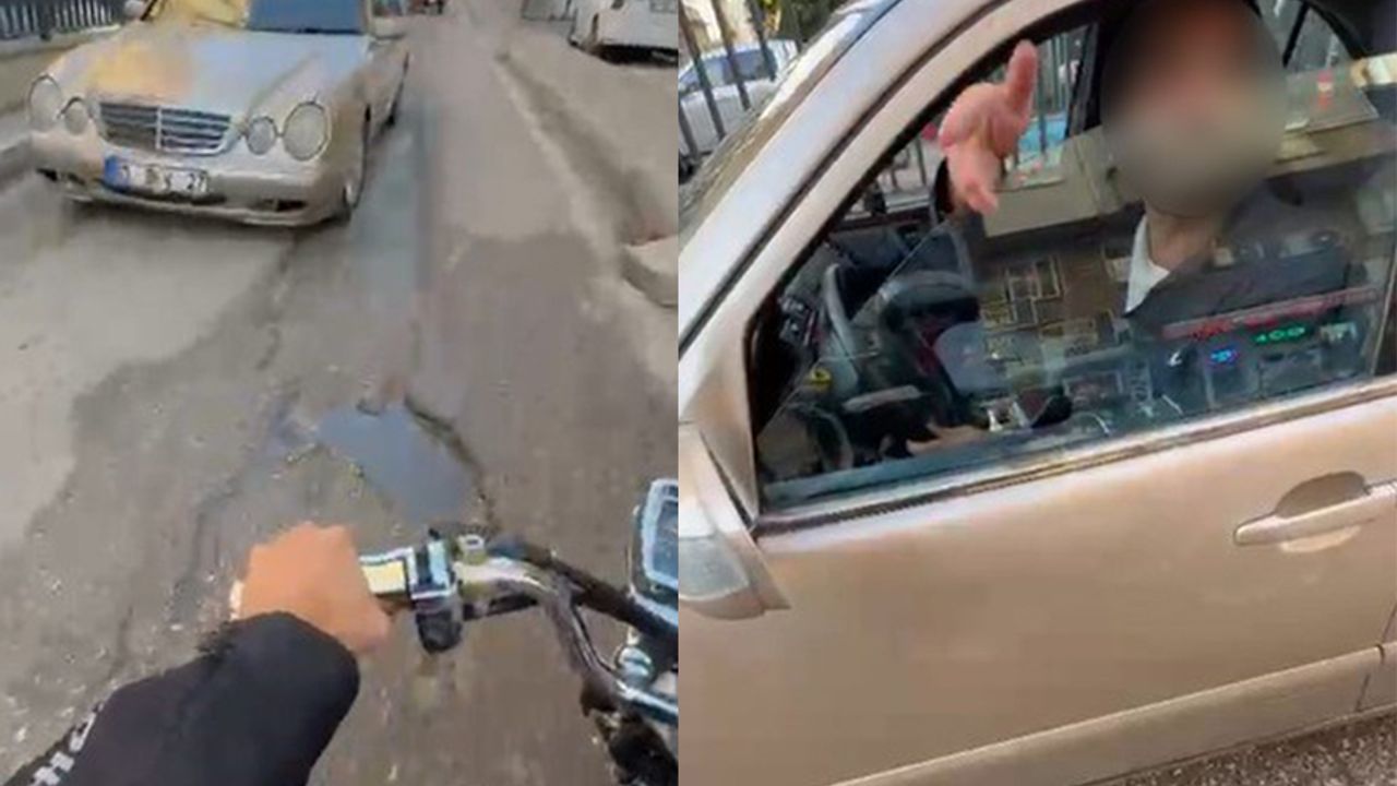Olay, merkez Seyhan ilçesine bağlı Cumhuriyet Caddesi’nde meydana geldi. İddiaya göre, 01 BLV 27 plakalı otomobiliyle caddeye ters yönden giren bir otomobil, motosiklet ile karşı karşıya geldi. Bu sırada motosiklet sürücüsünün, "Ters yön, beni canımdan mı edeceksin" demesi üzerine otomobil sürücüsünün, "Trafik polisi misin? Canından olma bekle, istediğim yerden girerim" sözleri pes dedirtti. Yaşanan tüm bu anlar, kask kamerasına saniye saniye yansıdı.