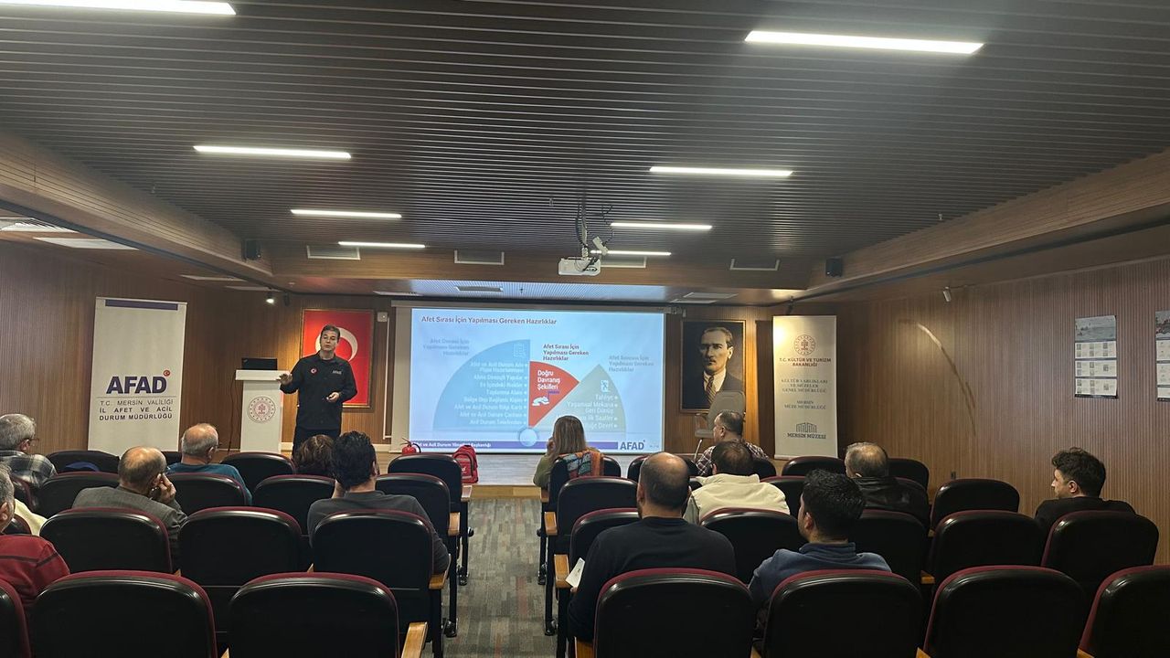 Afet ve Acil Durum Yönetimi Başkanlığı (AFAD) eğitmenleri tarafından, Mersin Denizcilik Müze Müdürlüğü personeline yönelik Afet Farkındalık ve Yangın Farkındalık eğitimi düzenlendi. Kurum personelinin afetlere karşı bilinç düzeyini artırmayı hedefleyen program kapsamında hem teorik bilgiler paylaşıldı hem de uygulamalı tatbikatlar gerçekleştirildi. Eğitimlerin ardından deprem anı uygulaması, tahliye süreci, toplanma alanı organizasyonu ve yangın tatbikatı başarıyla tamamlandı. AFAD tarafından verilen afet farkındalık eğitimi, olası deprem, yangın ve diğer acil durum senaryolarında doğru davranış biçimlerini kapsadı. Eğitimde afet öncesi hazırlık, afet anında doğru hareket tarzı ve afet sonrasında yapılması gerekenler detaylı şekilde ele alındı. Özellikle kamu kurumlarında görev yapan personelin kriz anlarında soğukkanlı ve planlı hareket etmesinin hayati önem taşıdığına dikkat çekildi. Yangın farkındalık eğitimi kapsamında, yangın türleri, yangın söndürme ekipmanlarının doğru kullanımı ve ilk müdahale yöntemleri anlatıldı. Eğitim sonrası gerçekleştirilen yangın tatbikatında, senaryo gereği oluşturulan yangın durumuna müdahale edildi. Personel, belirlenen tahliye planı doğrultusunda binayı kontrollü şekilde boşalttı.
