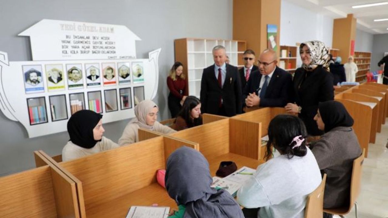 Vali Mustafa Koç, eşi Neslihan Gül Koç ve İl Milli Eğitim Müdürü Hasan Kökrek ile birlikte Hayrettin Atmaca Kız Anadolu İmam Hatip Lisesi'ni ziyaret etti.