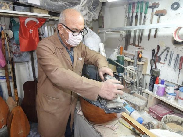 Daha sonra mahalledeki bir bağlama ustasının yanında çırak olarak başladığı saz yapımını 50 yıldır severek sürdüren Rasim Çaparoğlu, ilerlemiş yaşına rağmen her gün iş yerine gelerek tezgahının başında çalışmaya devam ediyor.