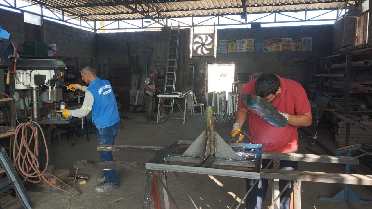 Fen İşleri Müdürlüğü’ne bağlı teknik birimlerin sahasında yer alan atölyelerde, çöp konteynerlerinin yanı sıra zamanla zarar gören masalar, sandalyeler, çadır ve şemsiye gibi taziye ekipmanları da usta eller sayesinde yenilenip tekrar vatandaşların hizmetine sunuluyor. Atölyelerde ayrıca farklı birimlere ait araç, gereç ve iş makineleri de görevli ustalar tarafından tamir edilip yenileniyor.