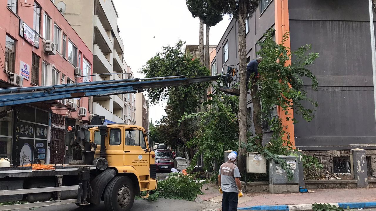 Park ve Bahçeler Müdürlüğü ekipleri, hafta sonu boyunca yoğun şekilde mesai harcayarak park, bahçe ve yeşil alanların yanı sıra cadde, sokak ile okul, cami, hastane ve sağlık ocağı gibi birçok kamu kurumunun bahçesinde yer alan ağaçların bakımını gerçekleştirdi. Sonbahar mevsimine girilen bu dönemde ekiplerin çalışmaları ilçe genelinde kesintisiz devam ediyor.