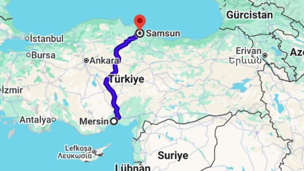 Mersin'den Samsun'a karayoluyla yapılacak seyahatlerde, tercih edilen güzergâh ve yol şartlarına göre mesafe ve süre değişmektedir: