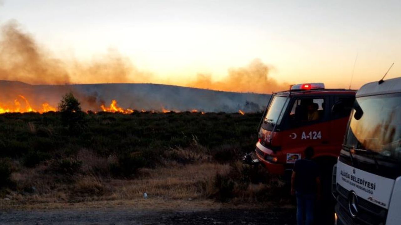Yangın, akşam saatlerinde Hacı Ömerli ile Çaltılıdere Mahalleleri arasında bulunan Mersinlik mevkisindeki otluk alanda çıktı. Henüz belirlenemeyen bir nedenle başlayan yangın, şiddetli rüzgar nedeniyle kısa sürede büyüyerek geniş bir alana yayıldı. Alevlerin büyümesi üzerine çevre sakinleri durumu 112 Acil Çağrı Merkezi’ne bildirdi. İhbar üzerine İzmir Orman Bölge Müdürlüğü ekipleri ile birlikte İzmir Büyükşehir Belediyesi İtfaiyesi ve Aliağa Belediyesi'ne bağlı su tankerleri ve iş makineleri hızla bölgeye sevk edildi. Yangının yol kenarına kadar ulaşmasıyla birlikte, Çanakkale-İzmir Devlet Karayolu üzerinde görüş mesafesi ciddi şekilde azaldı. Yol kenarındaki yoğun duman ve alevler nedeniyle araçlar ilerlemekte zorlandı. Olası kazaların önüne geçmek amacıyla trafik, Çandarlı mevkiinden itibaren otoyola yönlendirildi.