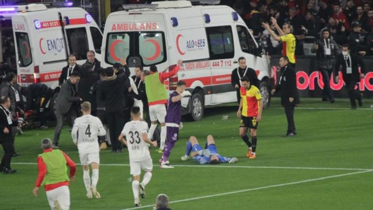 Spor Toto 1. Lig'in 15. hafta mücadelesinde Göztepe ve Altay, İzmir derbisinde karşı karşıya geldi. Karşılaşma golsüz eşitlikle devam ederken, maçın 19. dakikasında Altaylı taraftarların bulunduğu bölümden, Göztepeli seyircilerin olduğu alana işaret fişeği atıldı. İşaret fişeği, sarı-kırmızılı taraftar Mehmet Çakır'ın yüzüne isabet etti. Kanlar içinde kalan yaralı taraftara, hemen sağlık görevlileri müdahale etti. Bu sırada maçın durduğu dakikalarda tribünden sahaya atlayan Göztepeli bir taraftar, korner direğini yerinden sökerek ambulansın önündeki Altay kalecisi Ozan Evrim Özenç'e saldırdı. Yerde kalan Altay kalecisi Özenç, ambulansla hastaneye kaldırıldı ve başındaki 4 cm'lik kesiğe müdahale yapıldı. Kontrol amaçlı hastanede tutulan 29 yaşındaki Ozan Evrim Özenç, bugünkü kontrollerin ardından taburcu oldu.