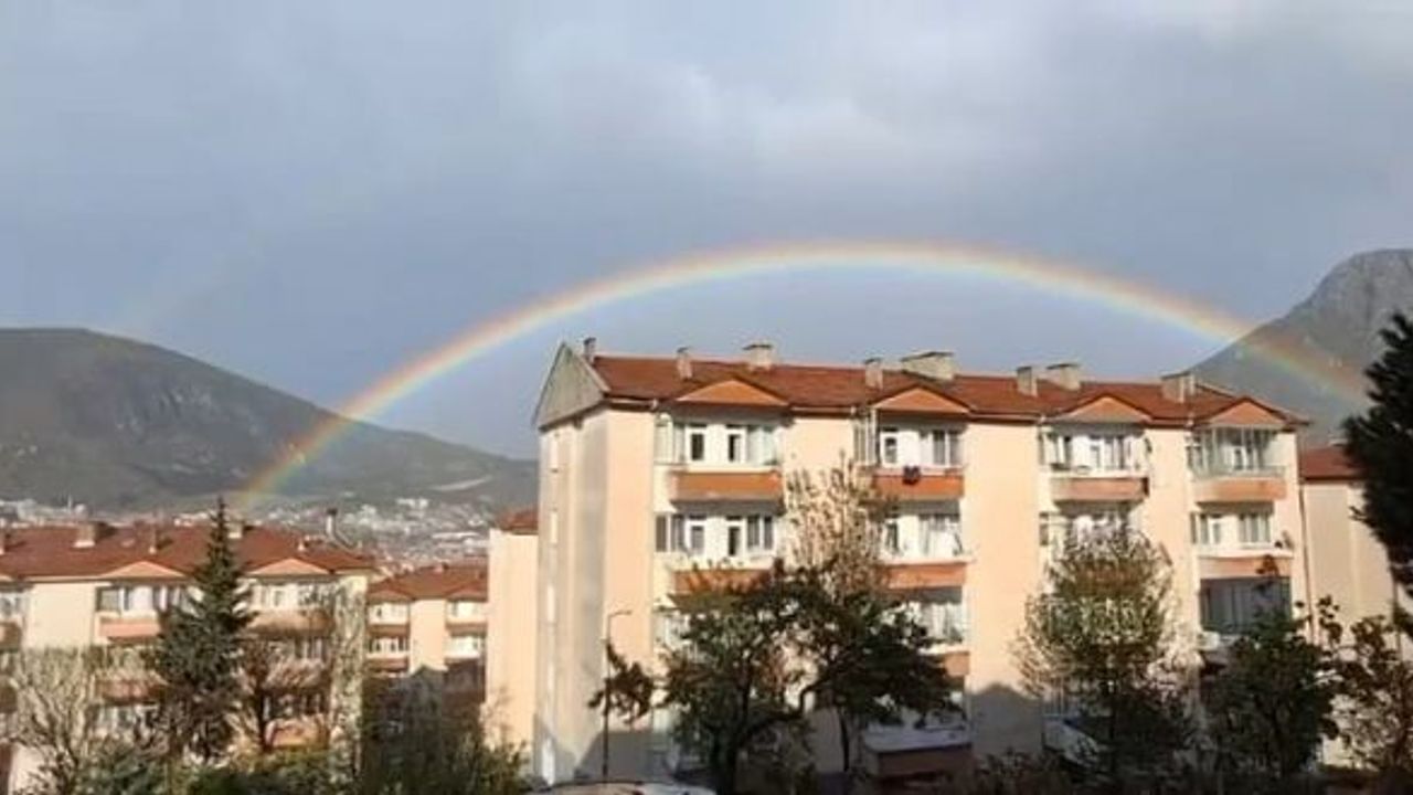 Kentte öğle saatlerinde başlayan sağanak, kısa süreli etkili oldu. Yağmur bulutlarının bir anda dağılıp güneşin yüzünü göstermesiyle, gökkuşağı ortaya çıktı. Kartpostallık bir görüntü oluşturan ve uzun süre kalan gökkuşağı, kentin birçok noktasından izlendi.