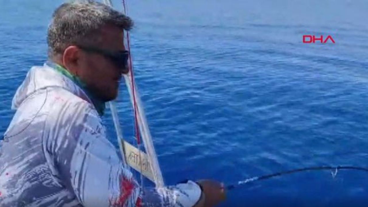 Hatay İskenderun'da hafta sonu balık tutmaya giden Ramazan Ercan, Karaağaç mevkisi açıklarından teknesiyle denize açıldı. Ercan'ın oltasına zorlu bir balık takıldı. Ercan, mücadeleler sonucu 56 kilo ağırlığındaki balığı teknesine çıkardı.
