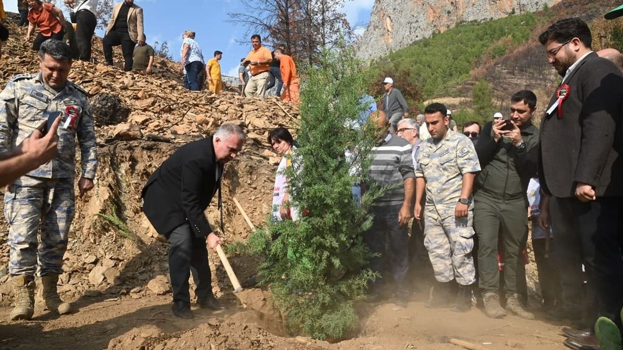 “Cumhurbaşkanımızın 2019 yılında yayımladığı genelgeyle 11 Kasım, Milli Ağaçlandırma Günü ilan edildi. Bugün ülkemizin dört bir yanında olduğu gibi Anamur’da da geleceğe nefes oluyoruz. İlçemizin yüzde 85’i orman. Ormanlarımız en büyük servetimizdir. Yanan ormanlar orman dışına çıkarılmaz, fonksiyonunu kaybetmez. Bu alanlar yeniden ağaçlandırılır ve doğaya kazandırılır. Sosyal medyada zaman zaman yer alan yanlış iddiaların aksine, ormanların amacı dışında kullanılması söz konusu değildir.”