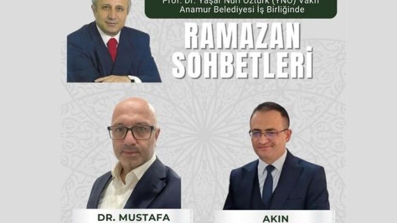 Anamur Belediyesi ile Prof. Dr. Yaşar Nuri Öztürk Vakfı iş birliğinde düzenlenecek ‘Ramazan Sohbetleri’ programı vatandaşlarla buluşacak. Ramazan ayı kapsamında gerçekleştirilecek programda iki farklı konuşmacı, din ve toplum ilişkisine dair konularda değerlendirmelerde bulunacak. Siyasal İslam, ahlak, iman tarzı konuların işleneceği programda çeşitli sohbetler gerçekleşecek. Programda Dr. Mustafa Tahir Öztürk, ‘Siyasal İslam / Allah ile Aldatma Siyaseti’ başlıklı konuşmasını yapacak. Akın Karadeniz ise ‘Kur’an’a Göre İman, Ahlak ve Adalet İlişkisi’ konusunu ele alacak. Etkinlik 13 Mart 2026 Cuma günü saat 20.00’de Anamur Belediyesi Meclis Salonu’nda gerçekleştirilecektir. Anamur Belediye Başkanı Durmuş Deniz tarafından yapılan davette, Ramazan ayının manevi atmosferinde gerçekleştirilecek programa tüm vatandaşların davetli olduğu ifade edildi.