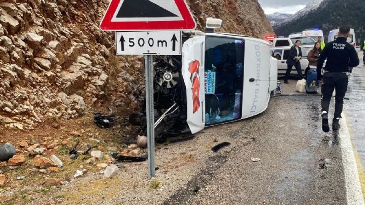 Antalya'da yolcu minibüsünün devrilmesi sonucu meydana gelen trafik kazasında 9 kişi yaralandı.