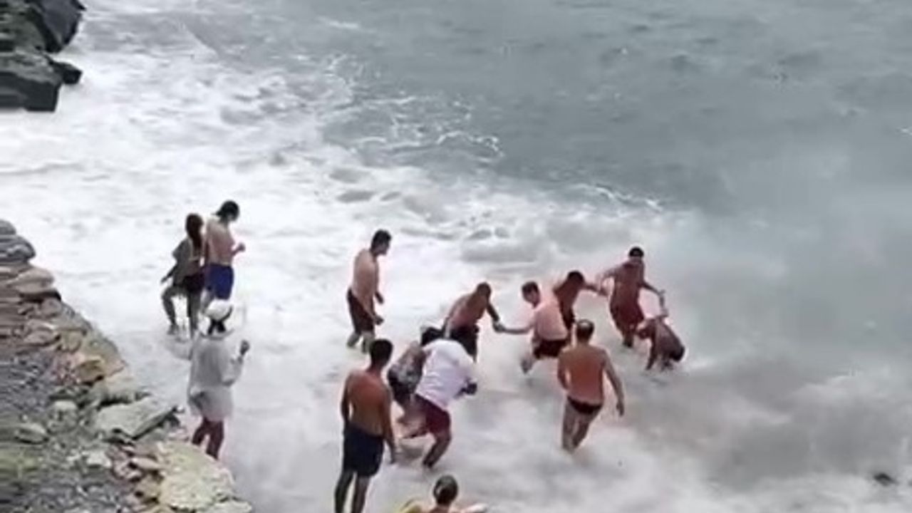 İlk olarak denizdeki gence ulaşan cankurtaran, yanına can simidi attı. Ancak sahile vuran kuvvetli dalgalar nedeniyle genç, simide ulaşmakta zorlandı. Bunun üzerine can simidine bağlı halatın yardımıyla sahildeki vatandaşlar insan zinciri oluşturdu. Bu zincir sayesinde genç kıyıya çekilerek boğulmaktan son anda kurtarıldı.