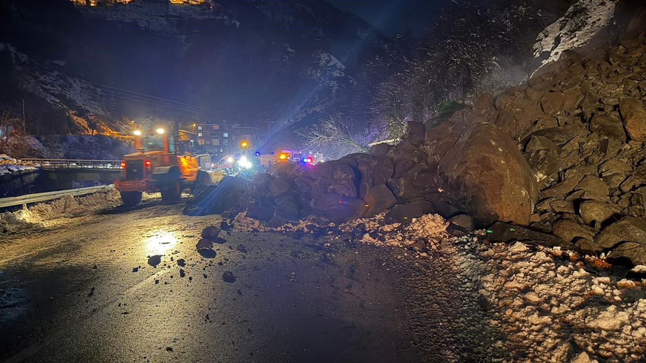 Olayın ardından Karayolları ekipleri bölgede temizlik ve yol açma çalışmalarına başlarken, yol yeniden kontrollü şekilde yeniden ulaşıma açıldı.