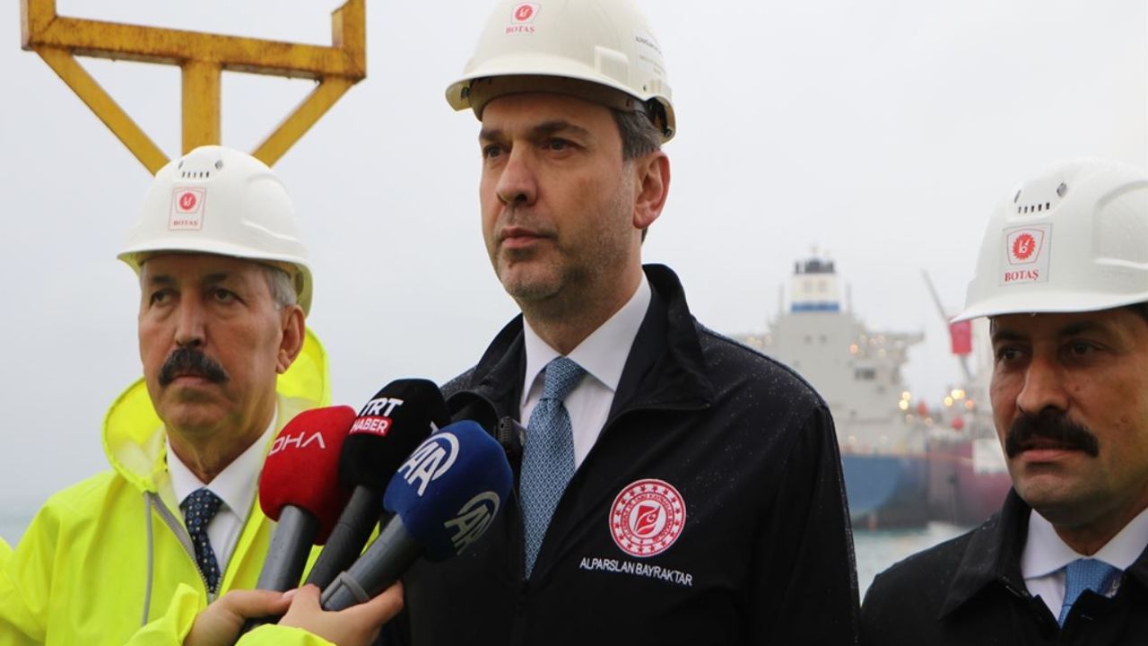 Hatay'ın Dörtyol ilçesine gelen Enerji ve Tabii Kaynaklar Bakanı Alparslan Bayraktar, Boru Hatları ile Petrol Taşıma AŞ (BOTAŞ) Terminali'nde bulunan Sıvılaştırılmış Doğal Gaz (LNG) Depolama ve Yeniden Gazlaştırma Ünitesi (FSRU) gemisi Ertuğrul Gazi’nin 139’uncu transferini inceledi. Burada açıklamada bulunan Bakan Bayraktar, "Bugün burada BOTAŞ’ın 2018 yılında devreye aldığımız Ertuğrul Gazi FSRU gemimizi görüyorsunuz. Türkiye tabii doğal gazda çok önemli bir ülke. Vatandaşlarımızın özellikle içinde bulunduğumuz kış mevsiminde çok daha yoğun bir şekilde hissettiği doğal gaz ihtiyacının bir kısmını biz malumunuz boru hatlarımızla ama yine önemli bir miktarını, son dönemde yaptığımız yatırımlarla sıvılaştırılmış bir şekilde gemilerle alıyoruz. Ülkemize gemilerle gelen sıvılaştırılmış doğal gazı da tekrar sistemimizde kullanabilmek için gazlaştırmamız gerekiyor. Arkamızda görmüş olduğunuz bizim Ertuğrul Gazi gemimiz işte bu işlevi yerine getiriyor ve günde yaklaşık 28 milyon metreküp sıvı haldeki doğal gazı gaz fazına döndürüyor" diye konuştu.