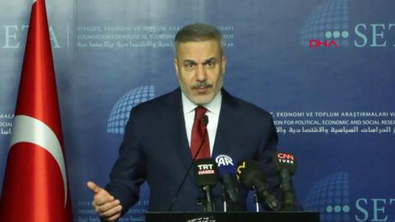 Suriye yönetiminin, Türkiye ve ABD ile yakın görüşme içerisinde olduğunu söyleyen Bakan Fidan, "Sayın Trump'a aslında gerçekten teşekkür etmek gerekiyor. Suriye'deki yönetime bir şans verilmesinin ve bunun desteklenmesinin, bölgenin güvenliği, istikrarı için önemli bir adım olacağı konusunda anlayış içerisinde oldular bizimle. Bu aslında önemli bir tavır. Burada bölge ülkelerinin, Arap ülkelerinin de Amerika'yla olan ilişkilerinin, telkinlerinin büyük bir rolü olduğunu da ayrıca vurgulamak gerekiyor. Umarız İsrail şu anda gerek Amerika'nın gerek Suriye'nin ortaya koyduğu teklifi kabul etmede zorlanmaz; herkesin müreffeh, eşit, özgür, güvenlik içerisinde olduğu bir bölge içerisinde yaşamayı kabul eder. Yoksa bütün mücavirindeki ülkeleri kaos içerisinde görerek kendine güvenlik sağlamak, sürdürülebilir bir şey değil. Bizim de kabul edeceğimiz bir şey değil. Suriye'nin tekrar bir kaos alanı olmasına Türkiye olarak müsamaha göstermemiz mümkün değil. Irak ve Suriye'de olan son 25-30 yıldaki olayların, Türkiye'ye inanılmaz büyük bir maliyeti oldu. Irak'ta olan olaylardan çıkardığımız birtakım derslerle de Suriye stratejisini, Suriye'deki kaosu yönetme konusunda önemli dersler çıkardık. İsrail'le ilgili konuda hem uluslararası toplumun hem Amerika'nın hem bölge ülkelerinin verdiği mesaj aynı Filistin'de olduğu gibi. 'Suriye'ye yönelik müdahaleden işgalden vazgeç, varsa bir mesele, sorun bunu diyalogla, görüşmeyle hallet bir anlaşma ve uzlaşma zemini bul.' Şu an da verilen mesaj bu. Bu risk yönetildiği zaman ben Suriye'deki diğer risklerin yönetilmesinde çok fazla bir sorun görmüyorum" açıklamasında bulundu.