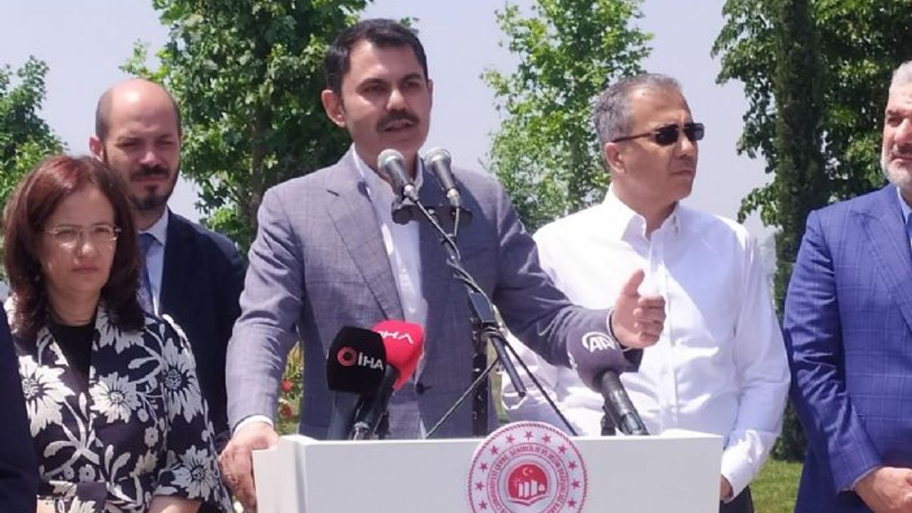 Çevre ve Şehircilik ve İklim Değişikliği Bakanı Murat Kurum yapımına başlanan ve pazar günü İstanbul'un fethi şölenlerinin de yapıldığı gün ilk fidanların dikileceği Atatürk Havalimanı Millet Bahçesi'nde basın mensuplarıyla bir araya geldi.