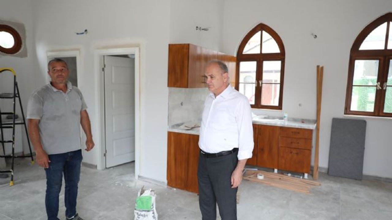 Nusrettin Mahallesi'nde yapımı devam eden inşaattaki çalışmaların son durumunu yerinde görmek için bölgeye giden Faruk Özlü, kısa süre içerisinde tamamlanarak hizmet vermeye başlaması öngörülen merkezin idari bina, tuvaletler, hol ve mutfağın bulunduğu iç kısımda yürütülen çalışmalarını inceledi.