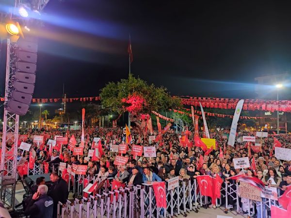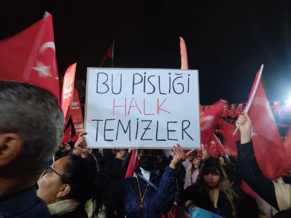 "Bu vatan, bu vatan oturulduğu yerde atalarımız tarafından kurulmadı. Daha geçtiğimiz gün Çanakkale zaferini andık. Duygulandık andık. Kürt'ü, Türk'ü, Arap'ı, Çerkez'i boşuna Anadolu coğrafyasında Osmanlı'nın tüm tebaaları orada emperyalizme karşı mücadele etti. Hepimiz hep beraber. Şimdi ayrıştırmaya çalışıyorlar. Böl, parçala, yönet. Buna gelmeyeceğiz. Ekrem Başkan'ı sahipsiz bırakmayacağız. Onun yanında olacağız. Yol arkadaşlığı budur, mücadele arkadaşlığı budur, bunu bilmeyenlere duyurulur."