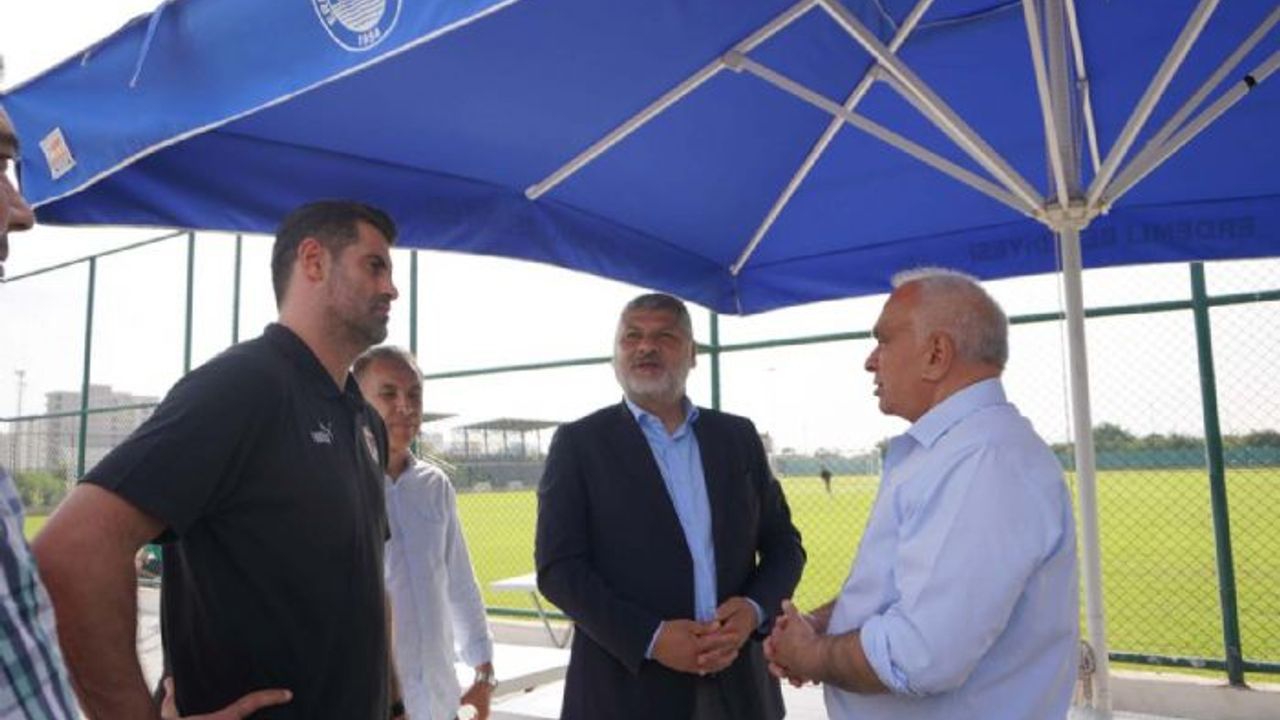 Başkan Tollu idmanlarını Erdemli belediyesi Çeşmeli Spor Sahasında yapan Hatayspor Kulüp Başkan Vekili Aydın Toksöz, Teknik Direktör Volkan Demirel ve futbolcularla hafta sonu gerçekleştirecekleri Galatasaray maçı öncesinde bir araya geldi, başarılar diledi.