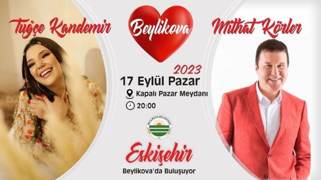 17 Eylül Pazar tarihinde Beylikova Belediyesi tarafından organize edilen gecede Tuğçe Kandemir ve Mithat Körler sahne alacak. Şarkılarını seyircilerle birlikte söyleyecek olana Tuğçe Kandemir ve Mithat Körler Beylikovalılara unutulmaz bir gece yaşatacak. Düzenlenecek gece ile ilgili Beylikova Belediye Başkanı Özkan Alp, "Her alanda gelişen ve güzelleşen Beylikova'mızda 17 Eylül Pazar günü saat 20.00'da Tuğçe Kandemir ve Mithat Körler'in en güzel şarkılarıyla buluşuyoruz. Tüm Eskişehirli hemşerilerimizi Beylikova'ya davet ediyorum" diyerek tüm bölge halkını ilçeye davet etti.