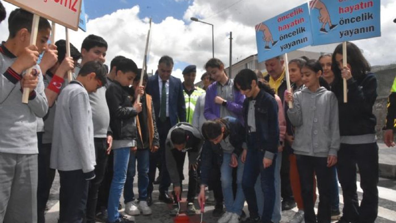 Düzenlenen program çerçevesinde ilk olarak 100. Yıl Ortaokulu önünde öğrenciler yaya geçidindeki kırmızı çizgiyi boyadı. Ardından Bitlis Emniyet Müdürlüğü önünde bulunan kontrol noktasında sürücülere broşür dağıtılarak şeker ve kolonya ikramında bulunuldu.