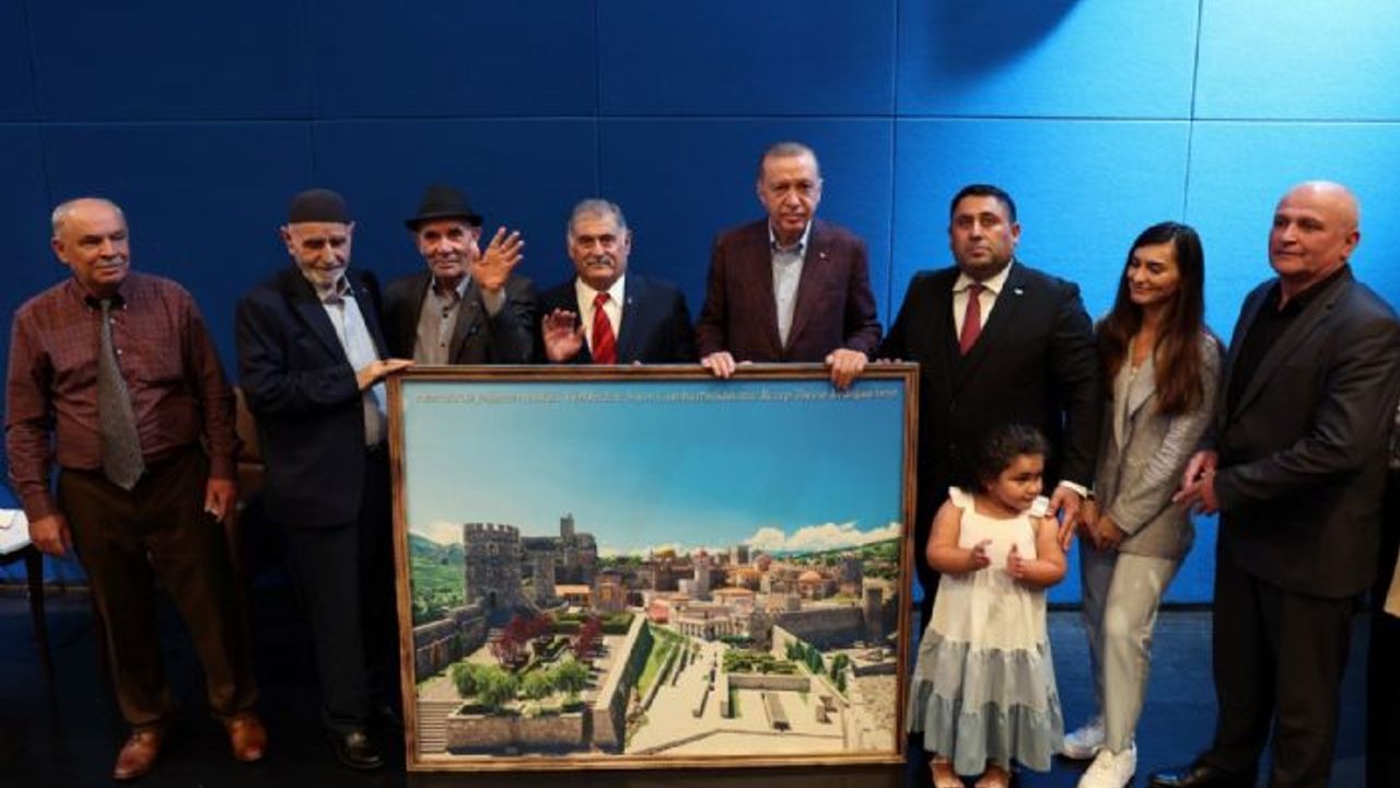 Ziyaret anısı olarak DATÜB ABD temsilciliği tarafından hazırlanan Ahıska'da bulunan Rabat Kalesinin tablosu Cumhurbaşkanı Erdoğan'a takdim edildi.