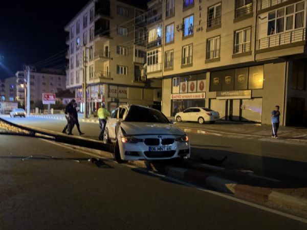 Edinilen bilgilere göre cadde üzerinde seyir halinde olan ve sürücüsü tespit edilemeyen 06 MNT 46 plakalı BMW marka lüks otomobil kontrolden çıkarak önce refüje, ardından belediyeye ait aydınlatma direğine çarptı. Kazada otomobil büyük hasar görürken kazayı görenlerin iddialarına göre sürücü ve yolcu olarak bulunan 2 kişi araçtan çıkarak olay yerini terk etti.
