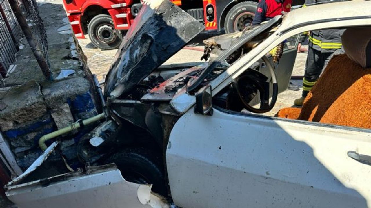 Alev alan otomobil, itfaiye ekiplerinin müdahalesiyle söndürülürken, kazayla ilgili inceleme başlatıldı.