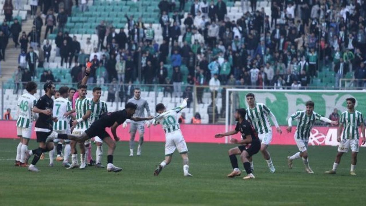 Hakem Burak Taşkınsoy, Çağatay Yılmaz'a kırmızı kart gösterince futbolcular arasında arbede çıktı. Olaylar sonrasında Diyarbekirspor'dan Serhat Çalışkan, Cem Celik ve Bünyamin Yürür, Bursaspor'dan ise Çağatay Yılmaz ile Bilal Güney kırmızı kartla cezalandırıldı.