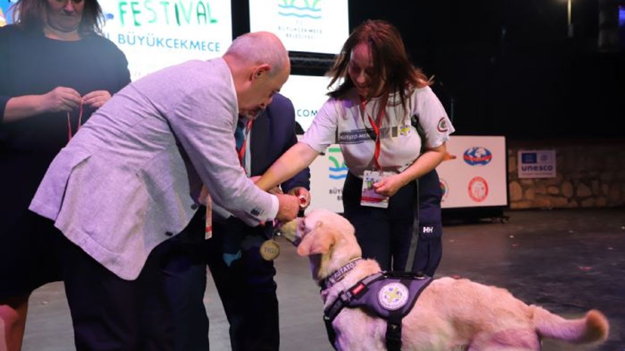Büyükçekmece Belediyesi tarafından 31 kişinin hayatını kurtaran köpeklere madalya verildi