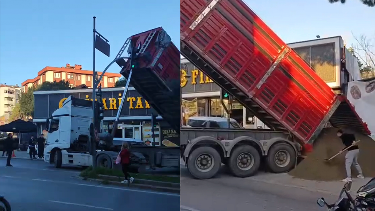Kaza, akşam saatlerinde Bahçelievler Mahallesi Adnan Menderes Caddesi'nde meydana geldi. Edinilen bilgiye göre, caddede kullandığı hafriyat kamyonunun yükünü boşaltmak isteyen şoför, dorseyi havaya kaldırdığı sırada, dorse trafik ışıklarına çarptı. Yükünü boşalttığı için manevra yapamayan kamyon trafik yoğunluğuna neden olurken, yaşananlar çevredeki kişiler tarafından cep telefonuyla kaydedildi.