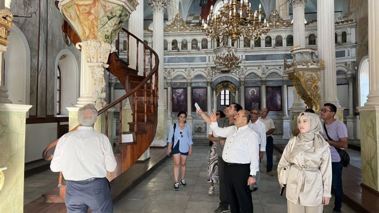 Beraberinde eşi Şenay ve kızı Sude Ustaoğlu ile beraber, tarihi Hayrettin Paşa ve merkezde bulunan tarihi Çınarlı ve Saatli Camii'ne hayran kalan Ustaoğlu, camilerin güzelliği içerisine yapılanlar vs değil, camilerin güzelliği içindeki cemaat ile daha güzelleştiğine dikkat çekti. Ustaoğlu, ayrıca Taksiyarhis ve Rahmi Koç Müzesi gezerek yetkililerden geniş bilgiler aldı.