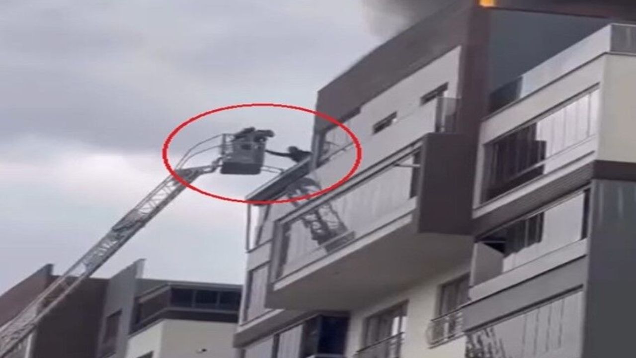 Bursa’da 8 katlı apartmanın çatı katında çıkan yangında mahsur kalan 2 kişi itfaiye ekiplerince kurtarılırken, o anlar kameraya yansıdı.