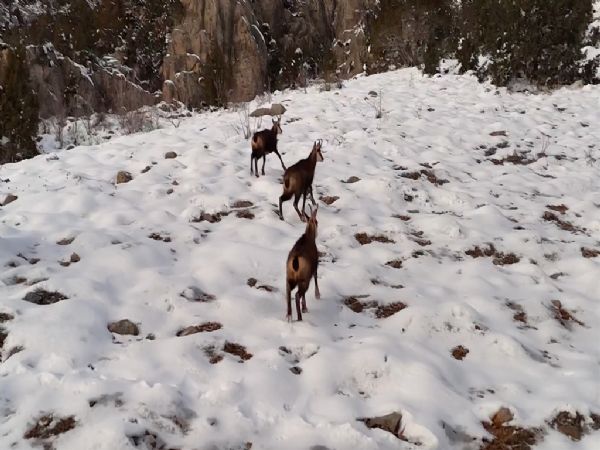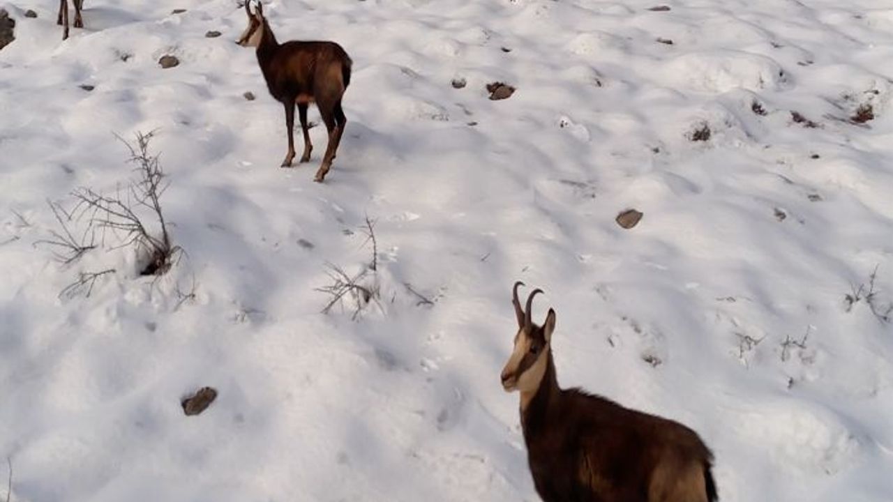 Erzincan'da doğal yaşamı gözlemleyen Meriç Yeter, Munzur Dağları'nda dronla görüntü alırken çengel boynuzlu dağ keçilerine rastladı. Uluslararası Doğayı Koruma Birliği'nin nesli tükenme tehlikesi altında olan türlerde kırmızı listede yer alan 'Şamua' olarak da bilinen çengel boynuzlu dağ keçilerini görüntüleyen Yeter, bir süre hareketlerini takip etti. 3 bin 300 metre rakımda karlı arazide bir süre beslenen keçiler, daha sonra gözden kayboldu.