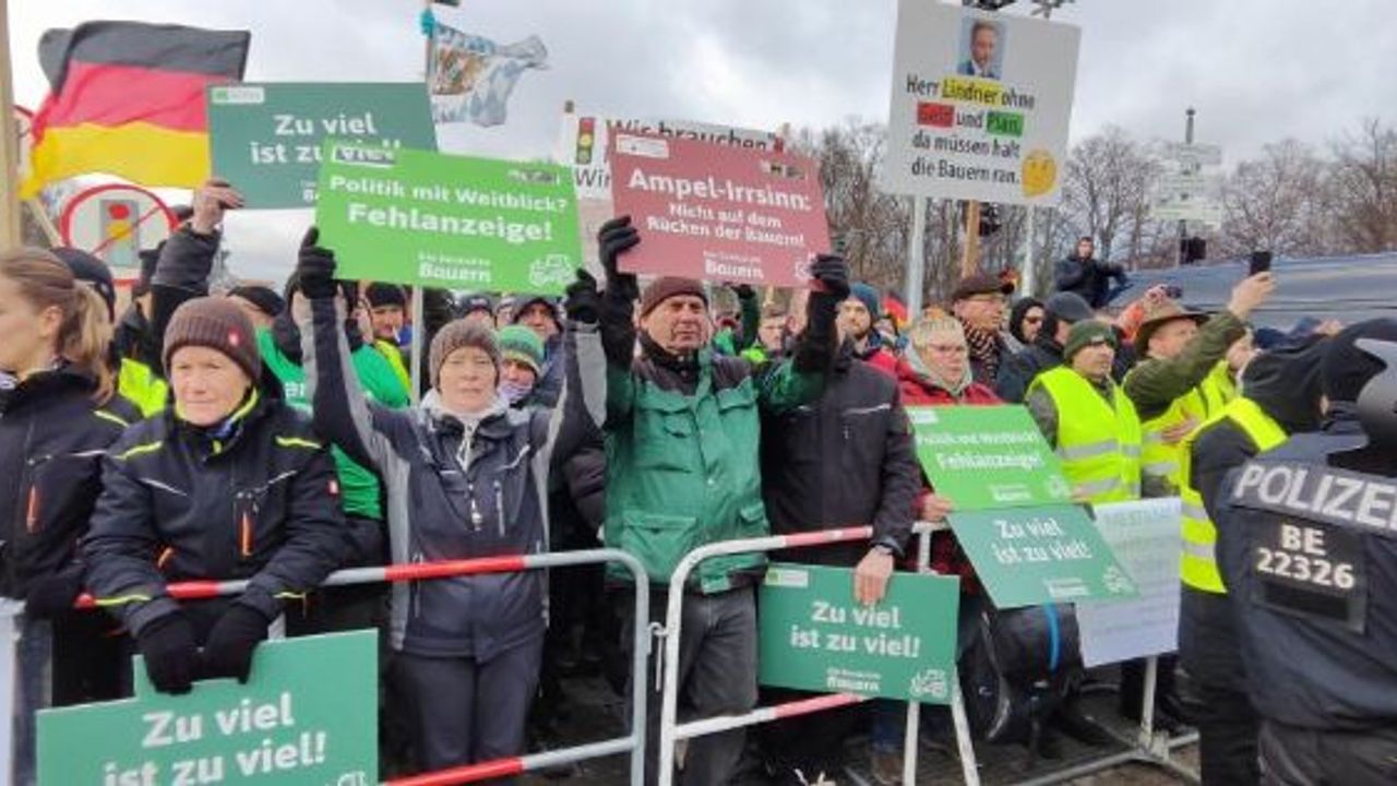 Başkent Berlin'de çiftçiler, traktörleri ile birlikte Brandenburg Kapısı'nın önünde toplandı. Polis şehir merkezine daha fazla traktör alınmayacağını duyururken, çiftçilerin eylemine nakliyeciler başta olmak üzere başka meslek grupları da destek verdi. Çiftçiler, yaklaşık 6 bin araçla 17 Haziran Caddesi'ni ve çevresindeki bağlantı yollarını trafiğe kapattı. Berlin'deki büyük çiftçi eylemleri nedeniyle trafikte aksamalar yaşanırken, özellikle şehir içi otobüs seferleri zamanında yapılamadı. Banliyö tren seferlerinde de aksaklıklar yaşandı.