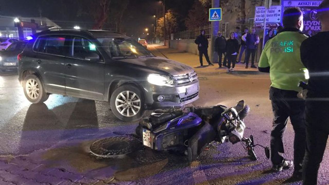 Yeni Mahalle Ada Caddesi Spor Kompleksi önünde meydana gelen kazada, K.Ç. yönetimindeki cip ile Emre T. idaresindeki motosiklet çarpıştı. Çarpışmanın etkisiyle yere düşen motosikletli yaralandı. Durumun haber verilmesi üzerine bölgeye sağlık ve polis ekipleri sevk edildi. Sağlık ekiplerince ilk müdahalesi yapılan yaralı, Akyazı Devlet Hastanesi'ne kaldırıldı. Kaza ile ilgili inceleme başlatıldı.