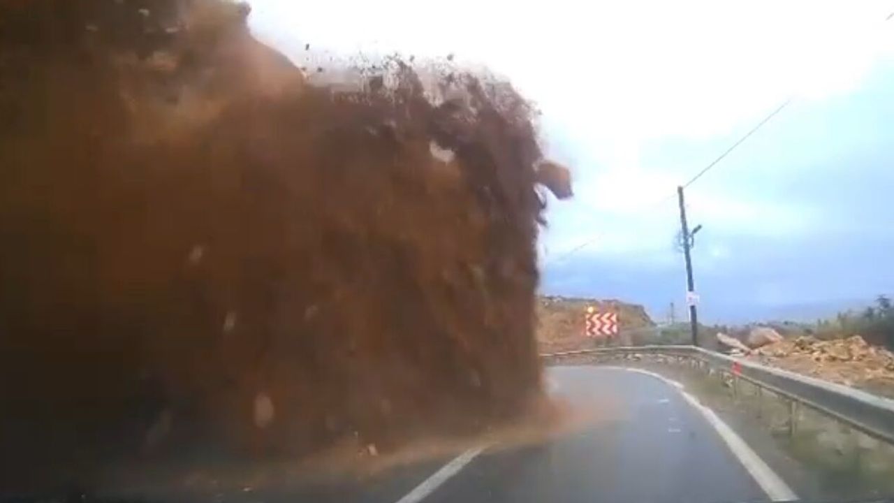 Mersin’in Aydıncık ilçesinde cipin dağdan kopan kaya parçalarının altında kaldığı anlar, araç kamerasına yansıdı.