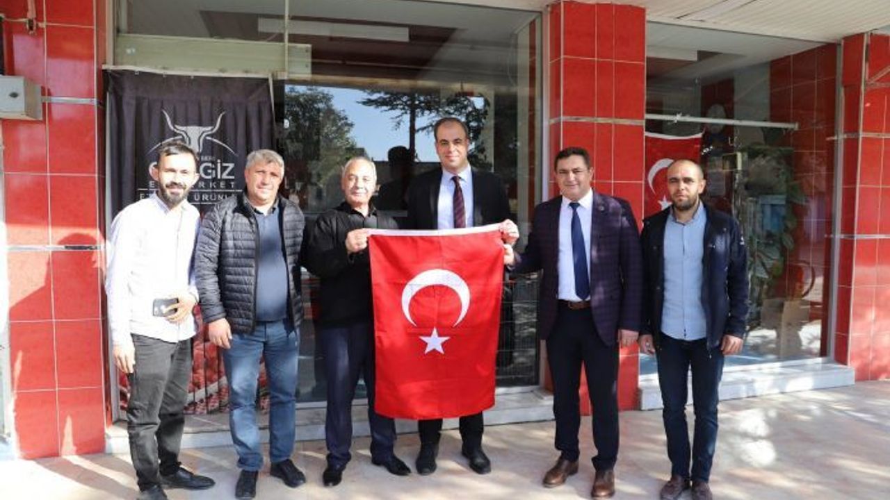 Çobanlar Kaymakamı Doğan Can Kandemir Cumhuriyetin 100' ncü yılı kutlamaları çerçevesinde ilçe esnafını ziyarette bulunup vatandaşlara Türk bayrağı hediye etti.