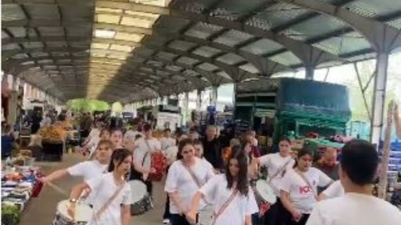 Talep üzerine esnafı kırmayan görevli öğretmenler öğrenciler ile birlikte pazaryerinin olduğu bölgede Trampet gösterilerine devam etti.