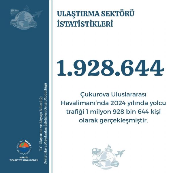 Aynı dönemde havalimanını kullanan yolcu sayısı ise 1 milyon 928 bin 644 kişi olarak kayıtlara geçti. Modern altyapısı, yüksek yolcu kapasitesi ve stratejik konumuyla dikkat çeken havalimanı, Çukurova Bölgesi'nin hava ulaşımı açısından güçlü bir merkezi haline gelmeye devam ediyor. Hem iç hat hem dış hat uçuşlarında artan talep, bölgedeki ekonomik canlılığı da destekliyor.