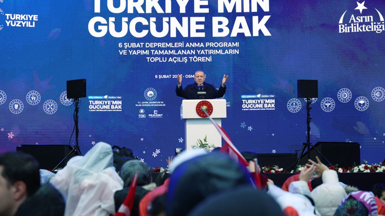 Cumhurbaşkanı Recep Tayyip Erdoğan, 6 Şubat Kahramanmaraş merkezli depremlerin 3. yıl dönümü kapsamında Osmaniye’ye geldi. Erdoğan, Osmaniye’de düzenlenen "Küllerinden Doğdu Yine, Türkiye’min Gücüne Bak" 6 Şubat Depremleri Anma Programı’na katıldı. Adnan Menderes Bulvarı’nda düzenlenen programda konuşan Erdoğan, "Aynı gün yaşadığımız iki büyük deprem sebebiyle rahmet-i rahmana kavuşan bu kardeşlerimizi unutmayacak, onların hatıralarını kalbimizde ve zihnimizde daima yaşatacağız. 6 Şubat depremlerinde milyonlarca insanımızdan kimi anne babasını, kimi de yoldaşını, hayat arkadaşını kaybetti. Nice kalpler dağlandı, nice canlar bir gecede ahirete göç eyledi. Biz metanet, sabır, tevekkül ve dirayet sahibi bir milletiz. Şu anda karşımda bu dirayet sahibi milleti görüyorum. Yasımızı tabi ki tutacağız ama yola devam etmeyi asla ihmal etmeyeceğiz. Birbirimize destek olduk ve olacağız. Birbirimizin yaralarını sardık ve saracağız. Bizi büyük millet yapan ne kadar değer varsa bunlara sahip çıkacağız. En karanlık gecelerde hem devletine hem de milletine güvenebilmiş, el ele sırt sırta, yürek yüreğe vererek bir umut zaferi görüyorum. Bundan da büyük bir gurur ve bahtiyarlık duyuyorum. Umutsuzluk girdabına düşmediğiniz için her birinizi ayrı ayrı tebrik ediyorum" ifadelerini kullandı.