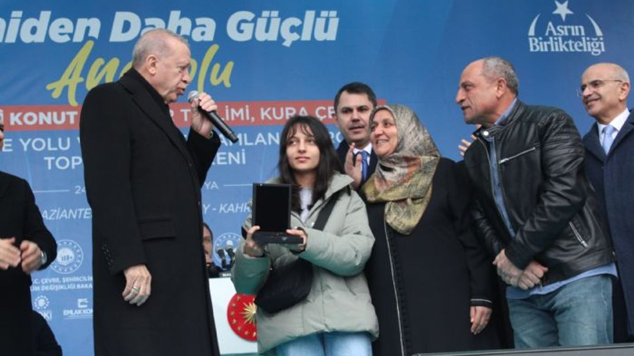 Cumhurbaşkanı Erdoğan, konuşmasının ardından kura çekimini yapıp, hak sahibi depremzede ailelere anahtarlarını teslim etti ve canlı bağlantı ile çevre yolunun açılışını gerçekleştirdi