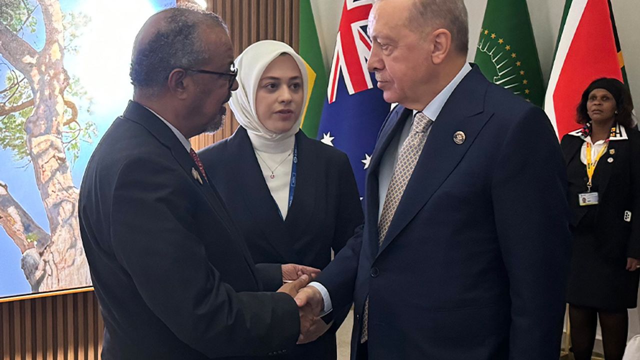 Cumhurbaşkanı Recep Tayyip Erdoğan’ın G20 Liderler Zirvesi kapsamındaki diplomasi trafiği oldukça yoğun geçiyor. Cumhurbaşkanı Erdoğan, Güney Afrika Cumhuriyeti’nin Johannesburg kentindeki ikili temasları çerçevesinde DSÖ Genel Direktörü Tedros Adhanom Ghebreyesus’u kabul etti. Görüşme, zirve alanında gerçekleşti.