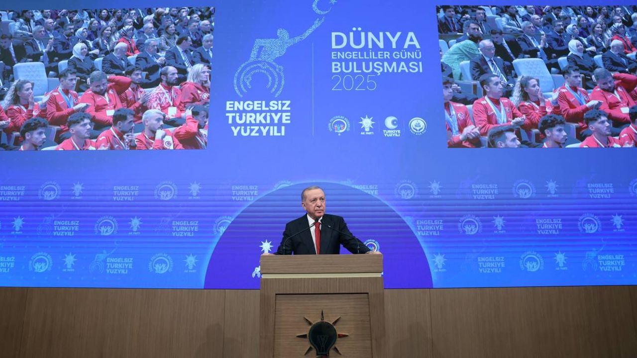 Cumhurbaşkanı Recep Tayyip Erdoğan, AK Parti Kongre Merkezi’nde düzenlenen "Engelsiz Türkiye Yüzyılı Dünya Engelliler Günü Buluşması" programında konuştu. Katılımcıları selamlayarak konuşmasına başlayan Cumhurbaşkanı Erdoğan, "3 Aralık Dünya Engelliler Günü vesilesiyle düzenlenen bu anlamlı programda sizlerle bir araya gelmekten büyük bir memnuniyet duyuyorum. 81 ilimizdeki engelli kardeşlerimizi temsilen bugün aramızda bulunan misafirlerimize ve programımıza teşrif eden tüm konuklarımıza hoş geldiniz, sefalar getirdiniz diyorum. Ülkemizin, gönül coğrafyamızın ve dünyanın dört bir yanındaki tüm engelli kardeşlerimizin, dostlarımızın, büyüklerimizin Dünya Engelliler Günü’nü canı gönülden tebrik ediyorum. Bu önemli günün, engelli kardeşlerimizle birlikte onların kıymetli aileleri ve milletimizin tamamı için hayırlar getirmesini temenni ediyorum. Sizlerin vasıtasıyla hayat yolculuğunda ümitsizliğe asla alan açmayan, geleceğe hep güvenle bakan, azim ve sebatlarıyla hepimize örnek olan tüm engellilerimize buradan selamlarımı, sevgilerimi iletiyorum" dedi.