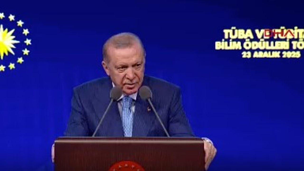 Cumhurbaşkanı Erdoğan, kısa süre önce Türkiye'de ilk kez hiper ölçekli bir bulut bölgesinin kurulmasına yönelik stratejik bir mutabakat imzalandığını anımsatarak, "2028-2029 yıllarında faaliyete geçmesi planlanan bu projeyle Türkiye, Avrupa, Asya ve Orta Doğu arasında dijital bir köprü kuracak, ülkemiz bölgesinin veri üssü konumuna gelecektir. Daha burada sayamayacağım pek çok sahada emin adımlarla hedeflerimize yürüyoruz. Dünyanın en iyileri arasında yer alacağımız bir lige yükseliyoruz. Bütün bunları önümüze çıkartılan çeşitli engellere rağmen, Sinop'taki füze denemelerimize 'balıklar tedirgin oluyor' diyerek karşı çıkan muhalefetin sığlığına rağmen başarıyoruz. Çünkü biz muhalefet halen bir türlü anlayamasa da milletimizin bilgisine, birikimine, çalışkanlığına, zekasına ve keşif kabiliyetine inanıyoruz. Biz işte bu salonda bulunan bilim insanlarımızın zorlukları aşma iradesine, Türkiye'ye hizmet etme şevkine sonuna kadar güveniyoruz. Son 23 yılda elde ettiğimiz kazanımlar gelecek adına bize ümit veriyor, heyecan veriyor, bizi daha büyük hedeflere koşmak için yüreklendiriyor. 'Balıklar ürküyor' tarzı absürt argümanlarla önümüzü kesmek isteyenlere aldırmadan üretmeye, geliştirmeye, yeni buluşlara imza atmaya inşallah devam edeceğiz. Ülke ve millet olarak biz evelallah daha fazlasını yapabiliriz. Nobel ödüllü bilim adamımız Prof. Dr. Aziz Sancar, işte İslam bilim tarihinde çığır açan merhum Prof. Dr. Fuat Sezgin, işte 100 yılın en iyi beyin cerrahı rahmetli Prof. Dr. Gazi Yaşargil, işte dünyaca ünlü matematikçimiz merhum Prof. Dr. Cahit Arf, işte tarihçilerin piri olarak bilinen merhum Prof. Dr. Halil İnalcık ve daha nicesi örnek alınması gereken birer başarı hikayesi olarak sizin, bizim, hepimizin karşısında duruyor. İnşallah onların gururla taşıdığı bu bayrağı sizler devralacaksınız. İnanıyorum ki bugün sizin yaptığınız bilimsel çalışmalar da bir kar topu misali büyüyecek, yarın başkalarına ilham ve cesaret verecek, rehberlik edecek, Türkiye'nin zirveye ulaşmasını kolaylaştıracaktır. Yeter ki siz çalışın, araştırın, şevkinizi kırmayın, iştiyakınızı kaybetmeyin. Gerisi Allah'ın izniyle gelecektir. Ben bundan asla kuşku duymuyorum" dedi.