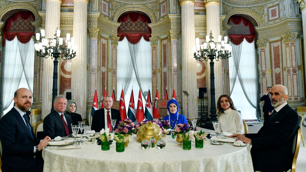 Cumhurbaşkanı Erdoğan, Ürdün Kralı 2. Abdullah'ı Dolmabahçe Çalışma Ofisi'nde resmi törenle karşıladı. Görüşmede, Milli Savunma Bakanı Yaşar Güler, Dışişleri Bakanı Hakan Fidan, MİT Başkanı İbrahim Kalın ve Cumhurbaşkanı Dış Politika ve Güvenlik Başdanışmanı Akif Çağatay Kılıç da hazır bulundu. Baş başa ve heyetler arası görüşmelerin tamamlanmasının ardından Ürdün Kralı 2. Abdullah tarafından Cumhurbaşkanı Erdoğan'a ‘Hüseyin Bin Ali Nişanı’ takdim edildi.